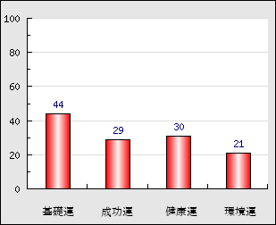 成功運 目的に対する成功運の強さをあらわします。この点数が高いほど自分の思い通りに成功し、逆に悪いと逆境・批判・障害などに苦心します。 29点