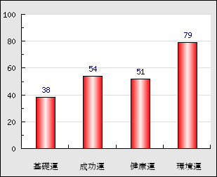 環境運 家庭や職場等での援助運・環境運を司ります。これが良いと配偶者や子供・職場の同僚などから助力が得られやすく、悪いと波乱・不和・孤独などがあります。 79点
