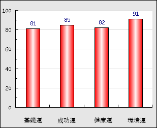 環境運 家庭や職場等での援助運・環境運を司ります。これが良いと配偶者や子供・職場の同僚などから助力が得られやすく、悪いと波乱・不和・孤独などがあります。 91点