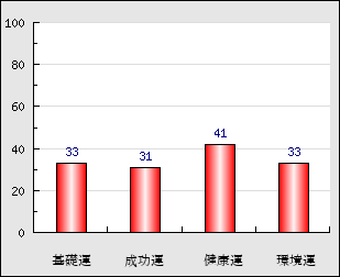 環境運 家庭や職場等での援助運・環境運を司ります。これが良いと配偶者や子供・職場の同僚などから助力が得られやすく、悪いと波乱・不和・孤独などがあります。 33点