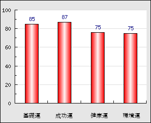 環境運 家庭や職場等での援助運・環境運を司ります。これが良いと配偶者や子供・職場の同僚などから助力が得られやすく、悪いと波乱・不和・孤独などがあります。 75点