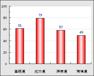 環境運 家庭や職場等での援助運・環境運を司ります。これが良いと配偶者や子供・職場の同僚などから助力が得られやすく、悪いと波乱・不和・孤独などがあります。 49点