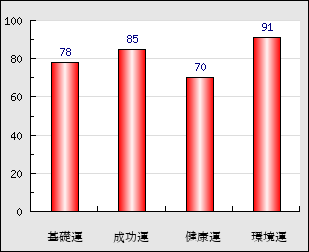成功運 目的に対する成功運の強さをあらわします。この点数が高いほど自分の思い通りに成功し、逆に悪いと逆境・批判・障害などに苦心します。 85点