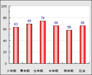 | 中年期 | 50~65歳頃 | 66点 0.0 |