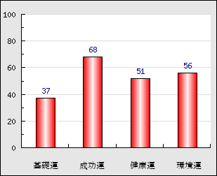 成功運 目的に対する成功運の強さをあらわします。この点数が高いほど自分の思い通りに成功し、逆に悪いと逆境・批判・障害などに苦心します。 68点