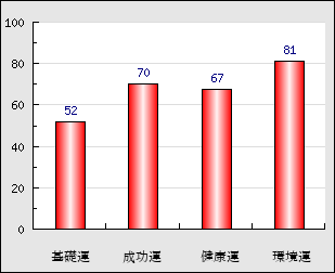 環境運 家庭や職場等での援助運・環境運を司ります。これが良いと配偶者や子供・職場の同僚などから助力が得られやすく、悪いと波乱・不和・孤独などがあります。 81点