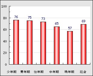 | 壮年期 | 35~50歳頃 | 70.0点+ 1.7 |