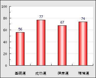 環境運 家庭や職場等での援助運・環境運を司ります。これが良いと配偶者や子供・職場の同僚などから助力が得られやすく、悪いと波乱・不和・孤独などがあります。 74点