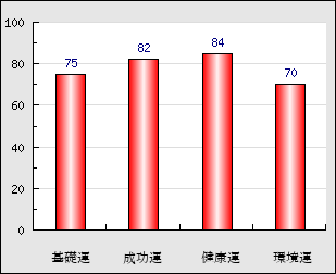 成功運 目的に対する成功運の強さをあらわします。この点数が高いほど自分の思い通りに成功し、逆に悪いと逆境・批判・障害などに苦心します。 82点