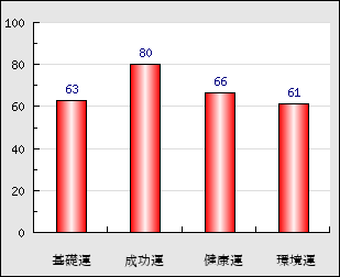 成功運 目的に対する成功運の強さをあらわします。この点数が高いほど自分の思い通りに成功し、逆に悪いと逆境・批判・障害などに苦心します。 80点
