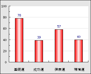 環境運 家庭や職場等での援助運・環境運を司ります。これが良いと配偶者や子供・職場の同僚などから助力が得られやすく、悪いと波乱・不和・孤独などがあります。 40点