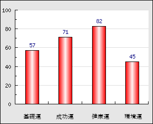 環境運 家庭や職場等での援助運・環境運を司ります。これが良いと配偶者や子供・職場の同僚などから助力が得られやすく、悪いと波乱・不和・孤独などがあります。 45点