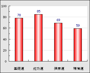 環境運 家庭や職場等での援助運・環境運を司ります。これが良いと配偶者や子供・職場の同僚などから助力が得られやすく、悪いと波乱・不和・孤独などがあります。 59点