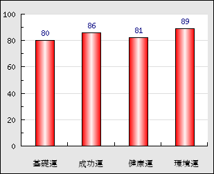 環境運 家庭や職場等での援助運・環境運を司ります。これが良いと配偶者や子供・職場の同僚などから助力が得られやすく、悪いと波乱・不和・孤独などがあります。 89点
