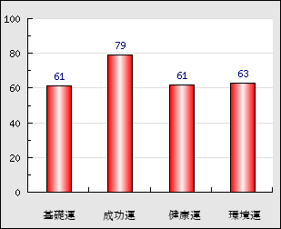 成功運 目的に対する成功運の強さをあらわします。この点数が高いほど自分の思い通りに成功し、逆に悪いと逆境・批判・障害などに苦心します。 79点