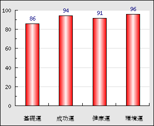 成功運 目的に対する成功運の強さをあらわします。この点数が高いほど自分の思い通りに成功し、逆に悪いと逆境・批判・障害などに苦心します。 94点