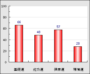環境運 家庭や職場等での援助運・環境運を司ります。これが良いと配偶者や子供・職場の同僚などから助力が得られやすく、悪いと波乱・不和・孤独などがあります。 28点