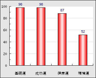 環境運 家庭や職場等での援助運・環境運を司ります。これが良いと配偶者や子供・職場の同僚などから助力が得られやすく、悪いと波乱・不和・孤独などがあります。 52点