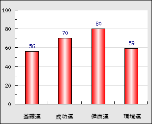 環境運 家庭や職場等での援助運・環境運を司ります。これが良いと配偶者や子供・職場の同僚などから助力が得られやすく、悪いと波乱・不和・孤独などがあります。 59点