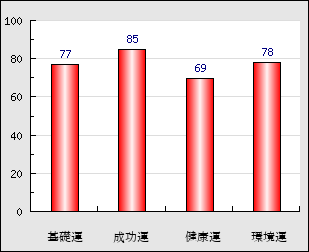 環境運 家庭や職場等での援助運・環境運を司ります。これが良いと配偶者や子供・職場の同僚などから助力が得られやすく、悪いと波乱・不和・孤独などがあります。 78点