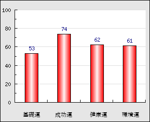 成功運 目的に対する成功運の強さをあらわします。この点数が高いほど自分の思い通りに成功し、逆に悪いと逆境・批判・障害などに苦心します。 74点