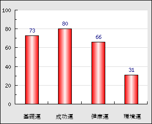 環境運 家庭や職場等での援助運・環境運を司ります。これが良いと配偶者や子供・職場の同僚などから助力が得られやすく、悪いと波乱・不和・孤独などがあります。 31点