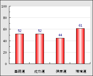 環境運 家庭や職場等での援助運・環境運を司ります。これが良いと配偶者や子供・職場の同僚などから助力が得られやすく、悪いと波乱・不和・孤独などがあります。 61点