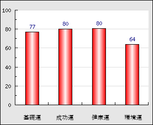 環境運 家庭や職場等での援助運・環境運を司ります。これが良いと配偶者や子供・職場の同僚などから助力が得られやすく、悪いと波乱・不和・孤独などがあります。 64点