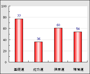 環境運 家庭や職場等での援助運・環境運を司ります。これが良いと配偶者や子供・職場の同僚などから助力が得られやすく、悪いと波乱・不和・孤独などがあります。 54点