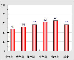 | 壮年期 | 35~50歳頃 | 57点 0.0 |