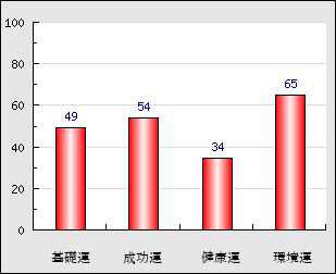 環境運 家庭や職場等での援助運・環境運を司ります。これが良いと配偶者や子供・職場の同僚などから助力が得られやすく、悪いと波乱・不和・孤独などがあります。 65点