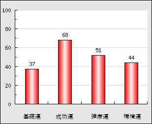 成功運 目的に対する成功運の強さをあらわします。この点数が高いほど自分の思い通りに成功し、逆に悪いと逆境・批判・障害などに苦心します。 68点