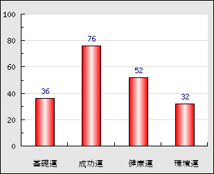 成功運 目的に対する成功運の強さをあらわします。この点数が高いほど自分の思い通りに成功し、逆に悪いと逆境・批判・障害などに苦心します。 76点