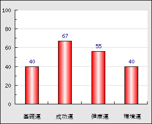 環境運 家庭や職場等での援助運・環境運を司ります。これが良いと配偶者や子供・職場の同僚などから助力が得られやすく、悪いと波乱・不和・孤独などがあります。 40点