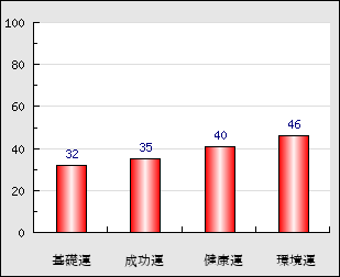 環境運 家庭や職場等での援助運・環境運を司ります。これが良いと配偶者や子供・職場の同僚などから助力が得られやすく、悪いと波乱・不和・孤独などがあります。 46点