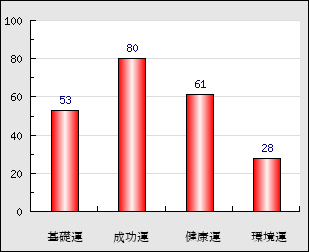 成功運 目的に対する成功運の強さをあらわします。この点数が高いほど自分の思い通りに成功し、逆に悪いと逆境・批判・障害などに苦心します。 80点