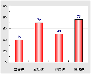 環境運 家庭や職場等での援助運・環境運を司ります。これが良いと配偶者や子供・職場の同僚などから助力が得られやすく、悪いと波乱・不和・孤独などがあります。 76点