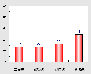 環境運 家庭や職場等での援助運・環境運を司ります。これが良いと配偶者や子供・職場の同僚などから助力が得られやすく、悪いと波乱・不和・孤独などがあります。 49点