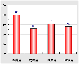 環境運 家庭や職場等での援助運・環境運を司ります。これが良いと配偶者や子供・職場の同僚などから助力が得られやすく、悪いと波乱・不和・孤独などがあります。 56点