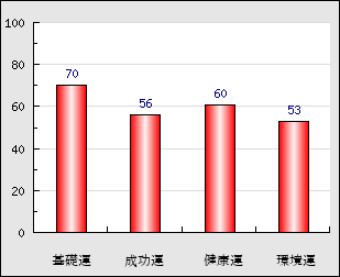 環境運 家庭や職場等での援助運・環境運を司ります。これが良いと配偶者や子供・職場の同僚などから助力が得られやすく、悪いと波乱・不和・孤独などがあります。 53点