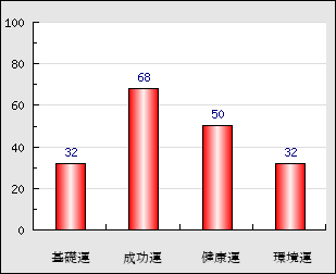 環境運 家庭や職場等での援助運・環境運を司ります。これが良いと配偶者や子供・職場の同僚などから助力が得られやすく、悪いと波乱・不和・孤独などがあります。 32点