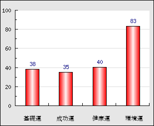 環境運 家庭や職場等での援助運・環境運を司ります。これが良いと配偶者や子供・職場の同僚などから助力が得られやすく、悪いと波乱・不和・孤独などがあります。 83点
