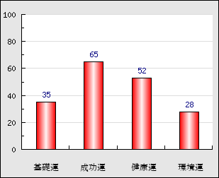 成功運 目的に対する成功運の強さをあらわします。この点数が高いほど自分の思い通りに成功し、逆に悪いと逆境・批判・障害などに苦心します。 65点