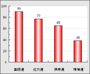 健康運 体力・健康に恵まれるか否かをあらわします。先天的に健康に恵まれても、これが悪いと次第に病弱となり、種々の病気に悩まされやすくなります。 65点
