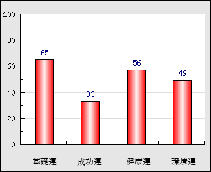 環境運 家庭や職場等での援助運・環境運を司ります。これが良いと配偶者や子供・職場の同僚などから助力が得られやすく、悪いと波乱・不和・孤独などがあります。 49点