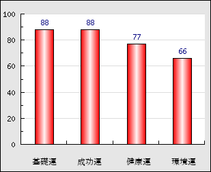 環境運 家庭や職場等での援助運・環境運を司ります。これが良いと配偶者や子供・職場の同僚などから助力が得られやすく、悪いと波乱・不和・孤独などがあります。 66点