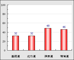 環境運 家庭や職場等での援助運・環境運を司ります。これが良いと配偶者や子供・職場の同僚などから助力が得られやすく、悪いと波乱・不和・孤独などがあります。 46点