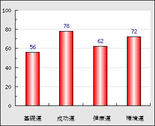 成功運 目的に対する成功運の強さをあらわします。この点数が高いほど自分の思い通りに成功し、逆に悪いと逆境・批判・障害などに苦心します。 78点