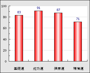 成功運 目的に対する成功運の強さをあらわします。この点数が高いほど自分の思い通りに成功し、逆に悪いと逆境・批判・障害などに苦心します。 91点