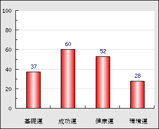 成功運 目的に対する成功運の強さをあらわします。この点数が高いほど自分の思い通りに成功し、逆に悪いと逆境・批判・障害などに苦心します。 60点